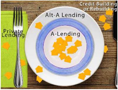 1) pushed into the margin between the side plate and the rim of the dinner plate (i.e., the Alt-A or Alternative Lending space), or